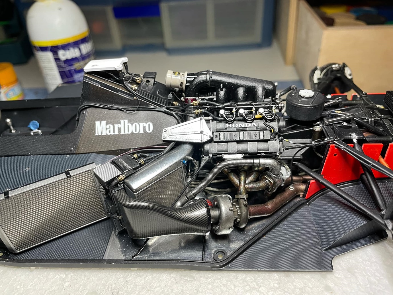 Ciao Andrea, uno spettacolo, ricordo molto bene questa vettura era il tempo in cui seguivo con passione la formula 1... ma sai che il livello di dettaglio della meccanica, impianto freni, motore e tutto il resto, penso sia un peccato caricargli sopra la scocca... per me sarebbe quasi il caso di realizzare un diorama dell'officina.