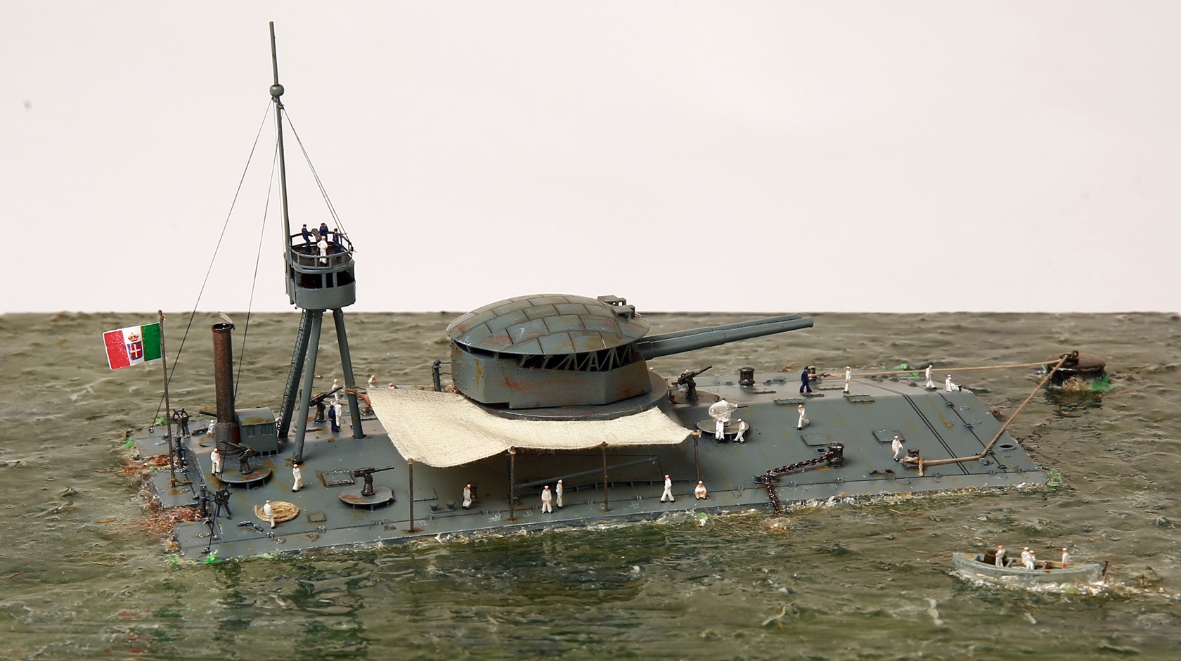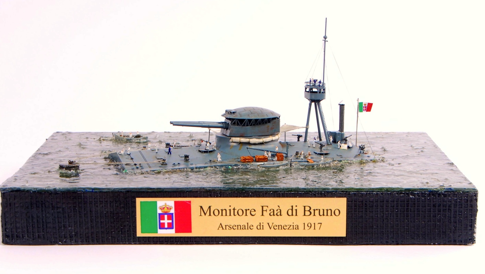 I due cannoni, destinati in origine alla nave da battaglia Cristoforo Colombo ormai dismessa, erano posti in una torretta a cielo aperto, progettata appositamente per questo monitore, dalle murate spesse 110 mm con barbetta da 60 mm e coperta da una cupola corazzata.