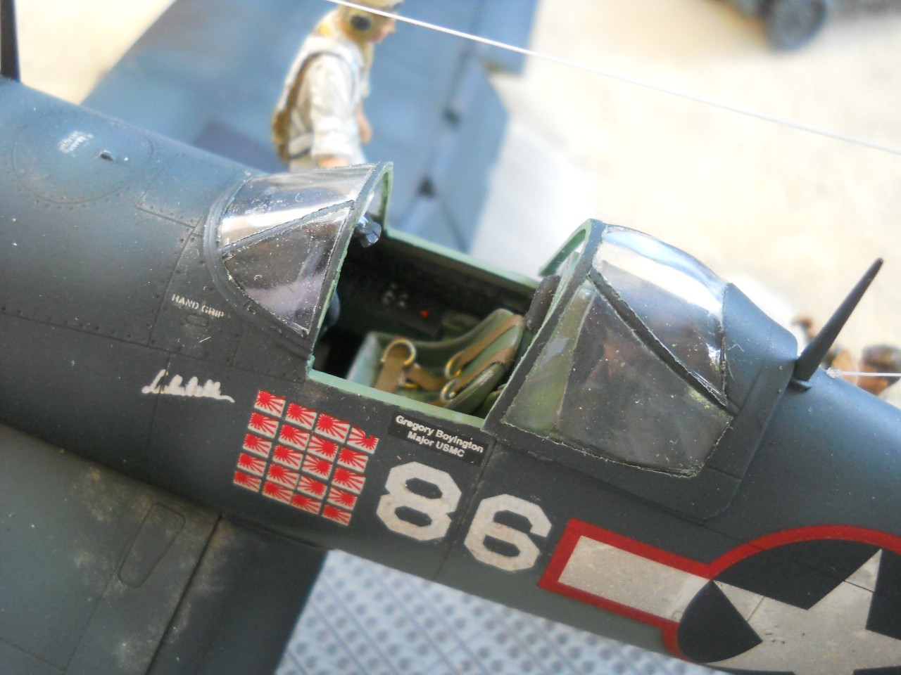 La rifinitura: con opaco trasparente per il Corsair di "Pappy" e con satinato trasparente per quello di Hedrick.