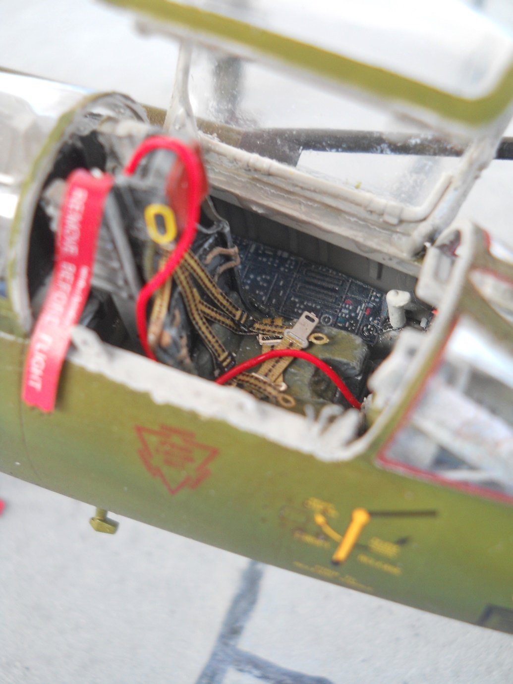 Il montaggio è uguale a quello adottato per gli altri, l'aggiunta di cablaggi a livello dell'HUD, l'aggiunta di una mappa infilata sopra il cruscotto, e i tubetti dell'impianto idraulico del carrello principale.