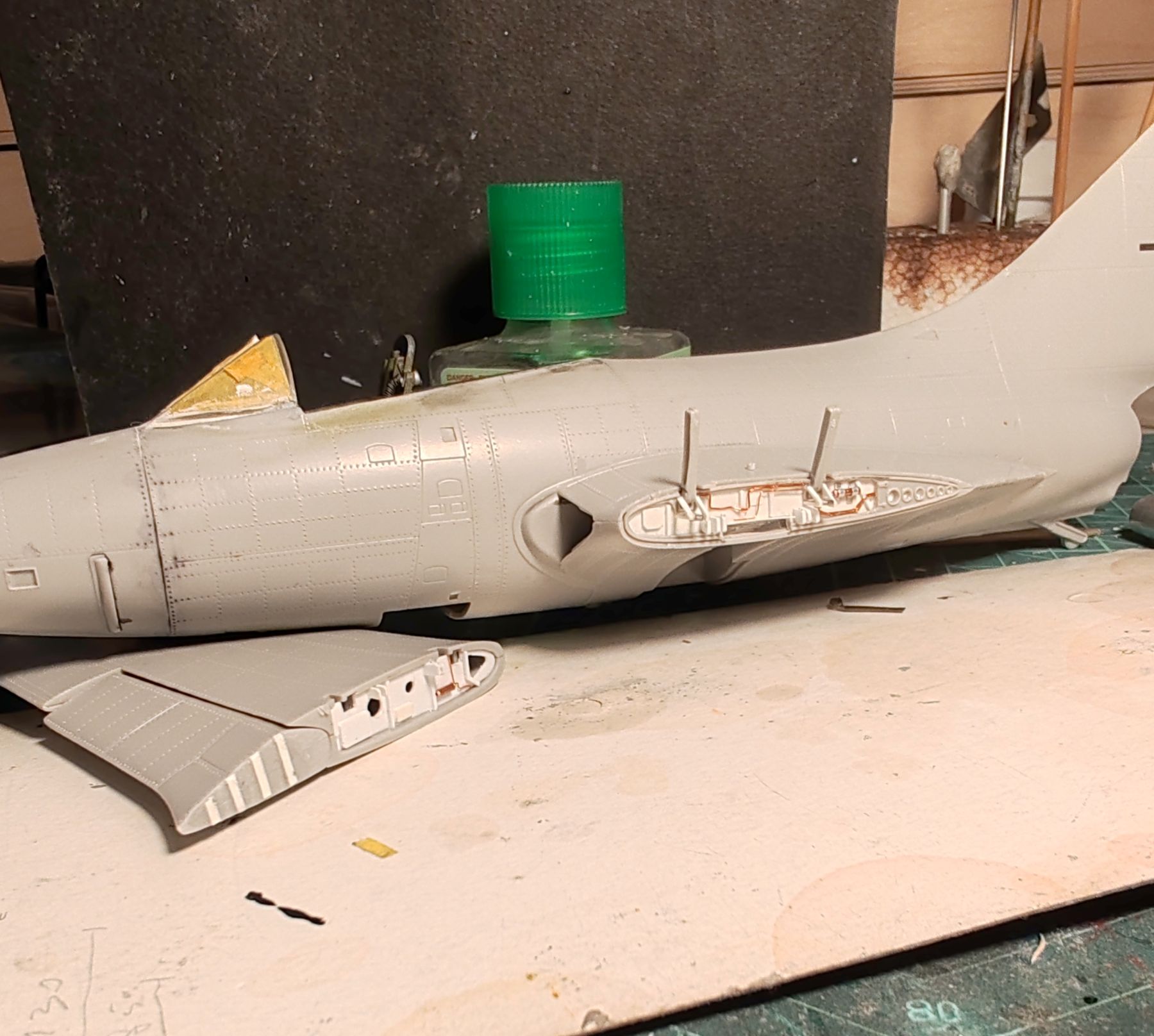 Il kit proposto da Trumpeter è accettabile nelle forme generali ma molto basico in ogni altro dettaglio, soprattutto cockpit e ripiegamento ali hanno bisogno di un minimo sindacale di lavoro.