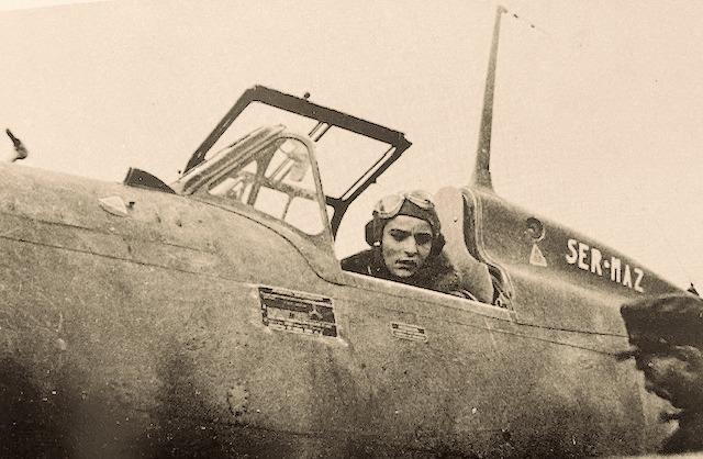 Macchi MC 205 Veltro, caccia purosangue appartenente alla 3 Sq. C.T. della A.N.R. con M.M. 9350 - III serie, che fu pilotato dal S.Ten. Sergio Mazzarelli, riconoscibile dal nome che abbreviato figurava su l'anti cappottata come "SER-MAZ".