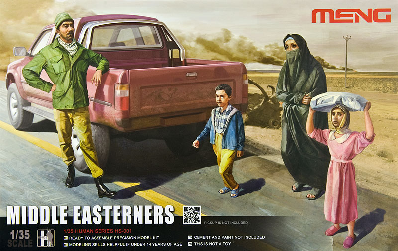 La ditta Meng propone ottimi kit per realizzare diorami, tra cui un set di 4 figurini di civili medio orientali e le barriere in cemento per blocchi stradali, tutto di buonissima qualità e a un costo economico.