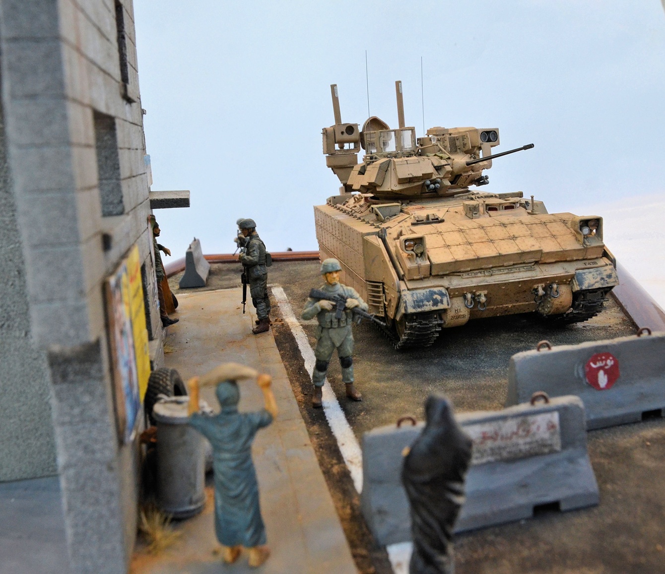 Come si nota dalle foto, ho voluto realizzare un posto di blocco da parte delle forze armate americane in una città Irachena: i soldati presidiano l'incrocio, osservando con particolare attenzione i civili che transitano nelle vicinanze.