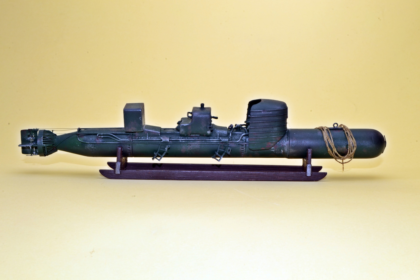 Ho quindi deciso di valorizzare il modello da solo, posizionandolo sulla sua sulla slitta in legno (in dotazione al kit) dove veniva appoggiato quando era sul molo e l'ho fotografato come vedete.