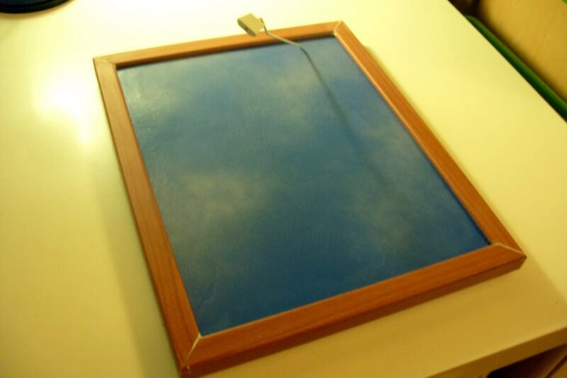 Utilizzando parte di un appendi abiti in metallo ed alcuni elementi in plasticard e del biadesivo, ho realizzato il sostegno infilato in un foro realizzato nella base; al momento posso ruotare l'elemento metallico e ruotare anche il supportino in plasticard per trovare un' orientamento differente.