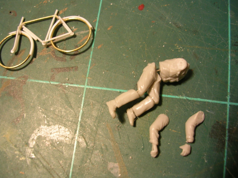 Ho preso a modello la bici della Tamiya in scala 1/35 con un tondino d’ottone ho sagomato il telaio che deve supportare il peso di un figurino con i piedi sui pedali.