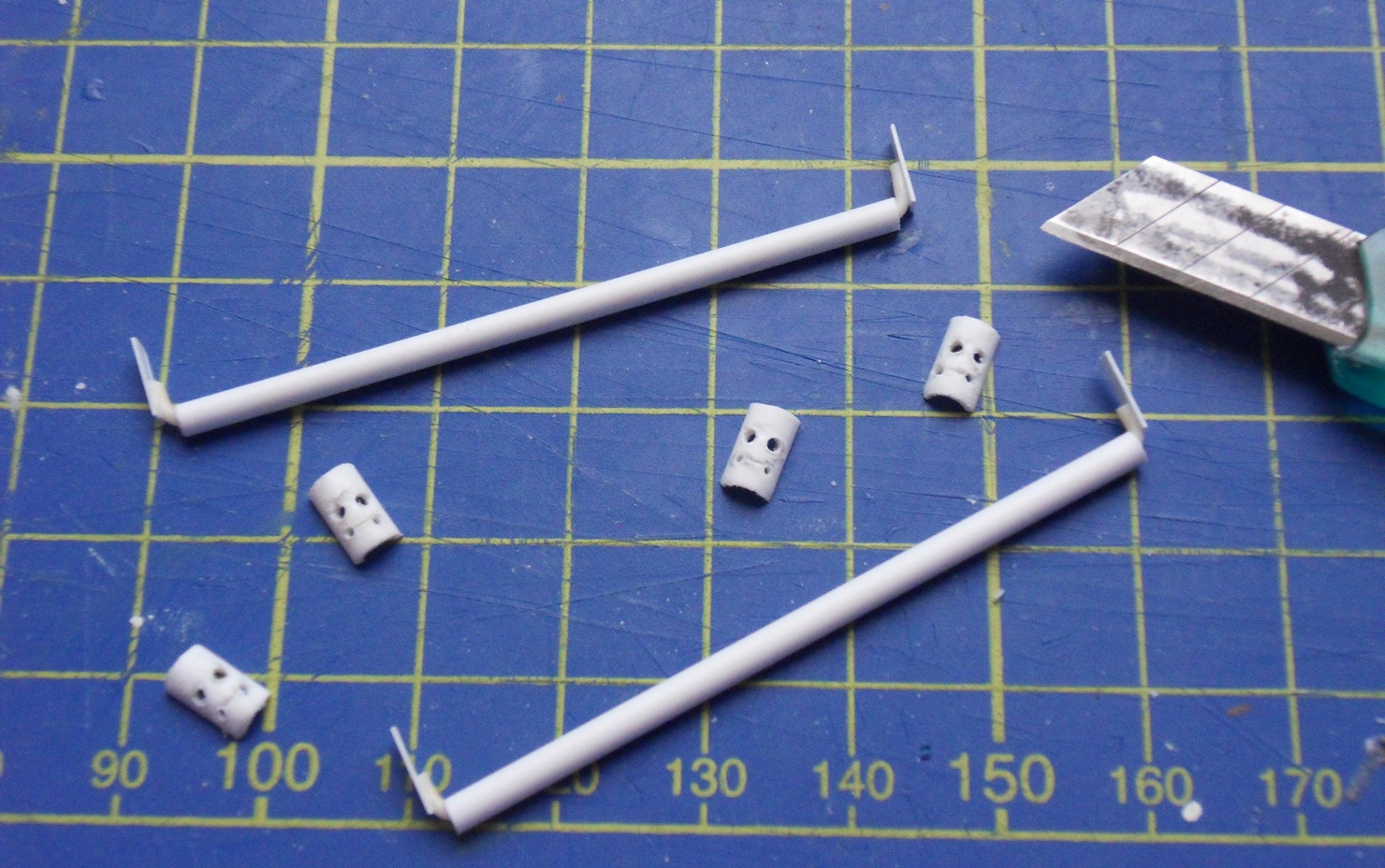 Ho autocostruito il portapacchi rivestendo i supporti con sculture TIKI in bambù (tubo di plasticard lavorato con fresa e minitrapano).