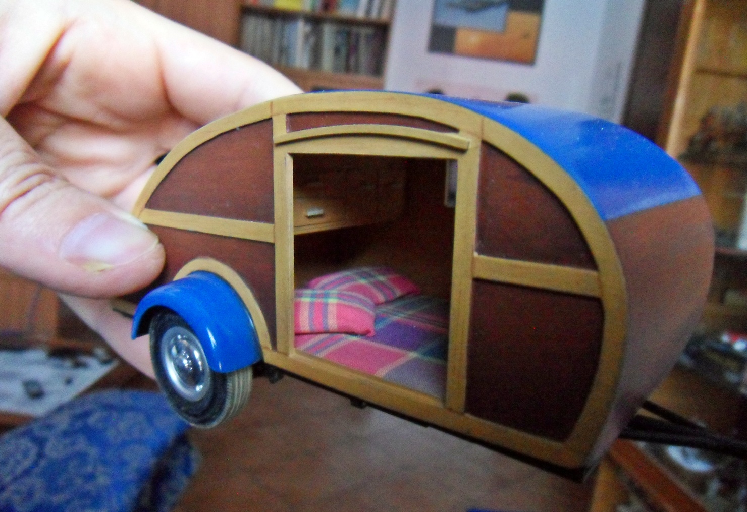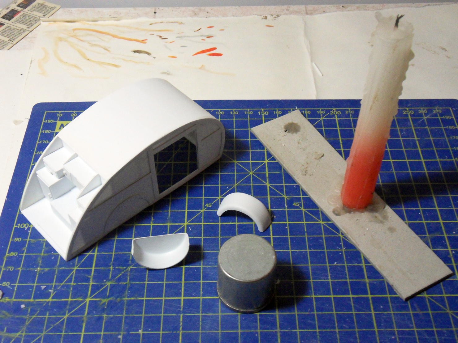 Per i parafanghi delle ruote ho scaldato del plasticard sulla candela e l'ho sagomato su un barattolo di colore Humbrol.