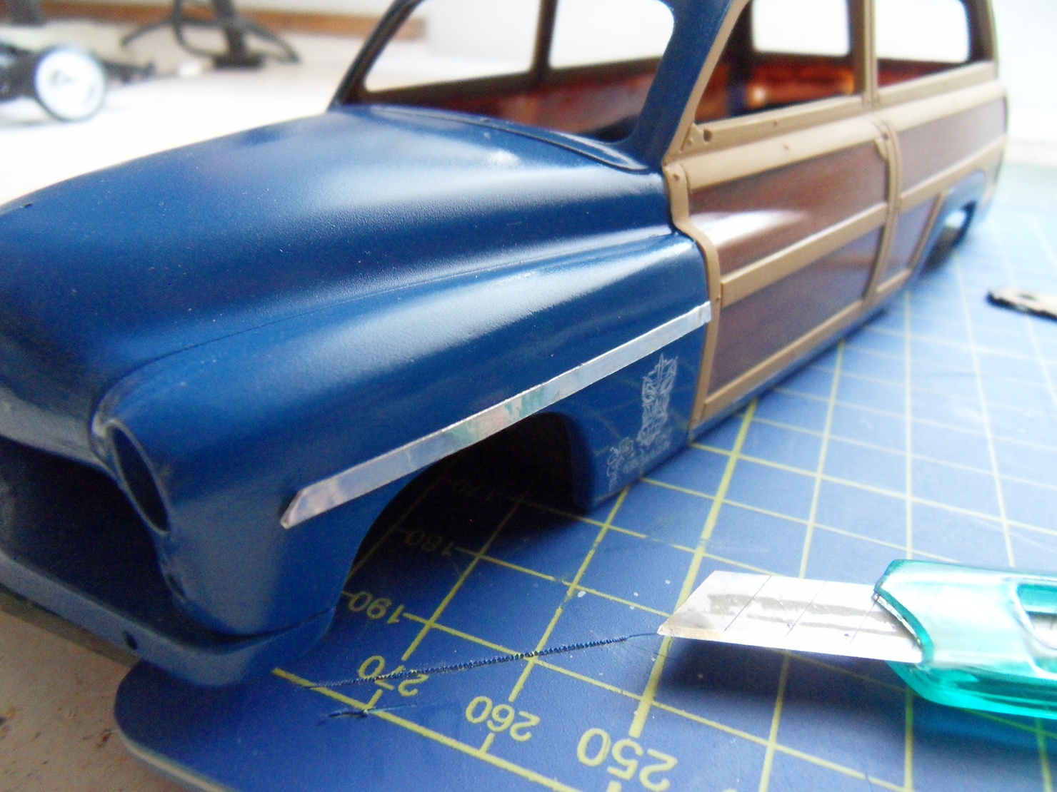 I dettagli sono ottimi. Bello il cruscotto. Ho sostituito la barra cromata sotto alle vetrate con un filo di stagno lucidato e ho rivestito con alluminio adesivo gli inserti anteriori sui passaruota.