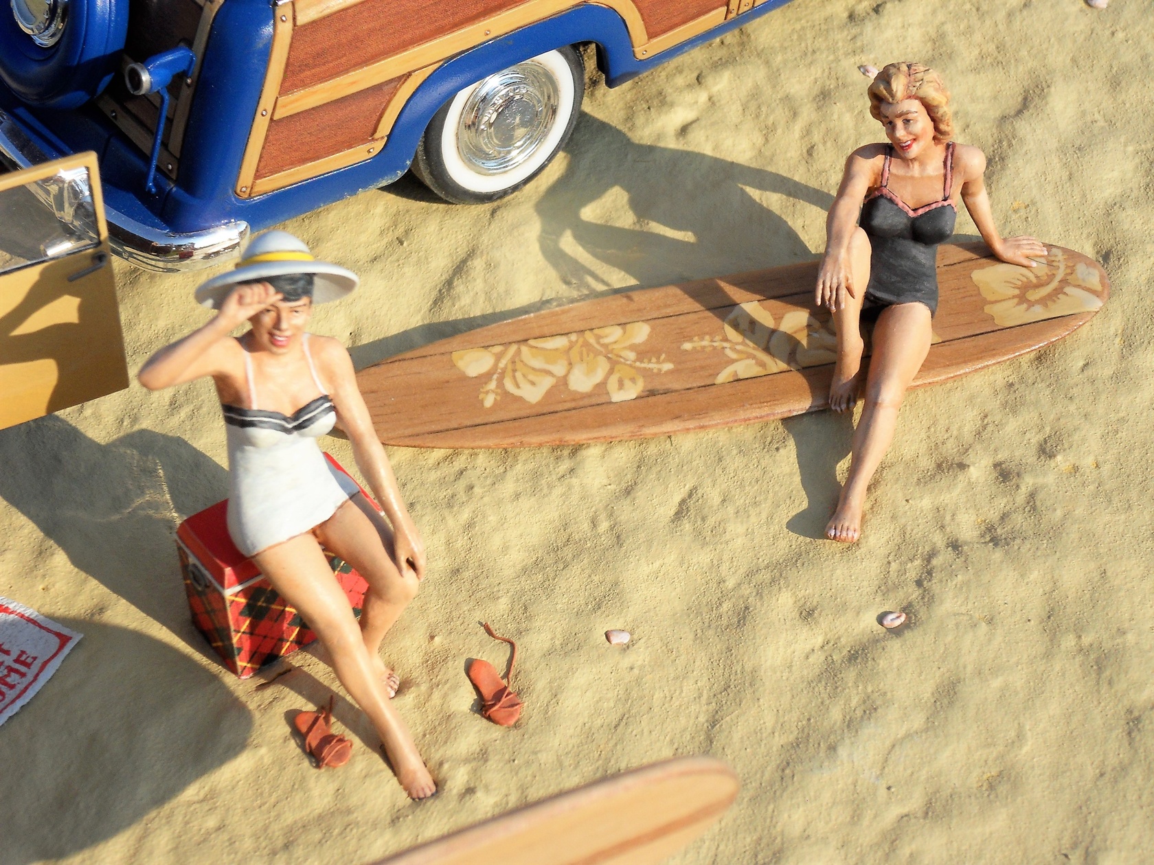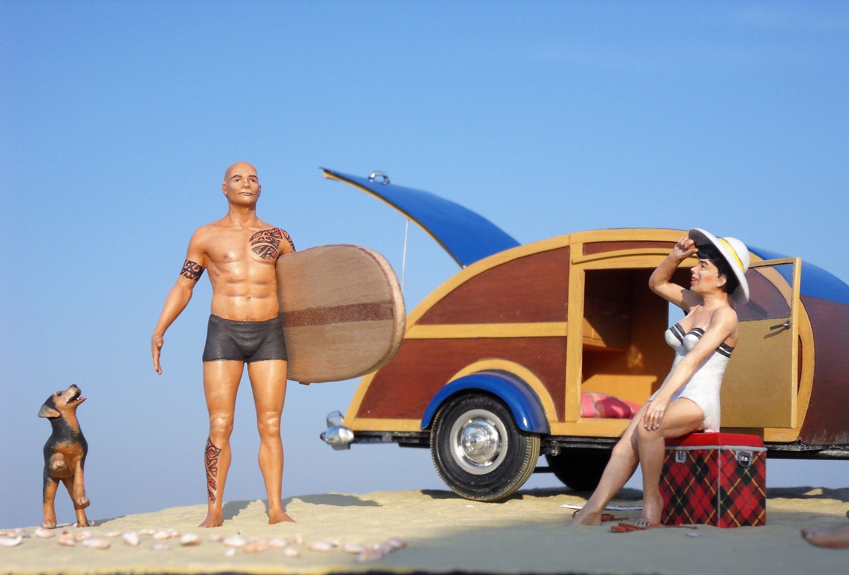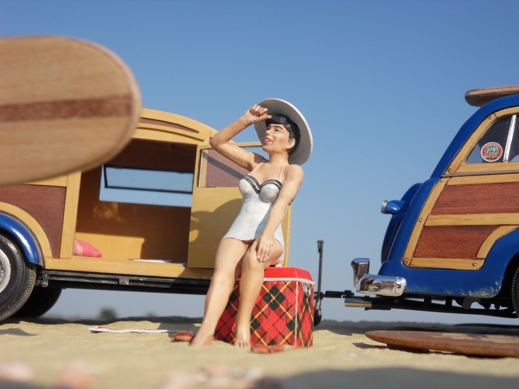Ho fatto questa scena con molto piacere rievocando l'epoca del dopoguerra gioioso nelle isole del Pacifico. Ancora non c'era la plastica ormai inquinante ed i materiali erano naturali. Spero di aver trasmesso quello spirito vintage dell'epoca.