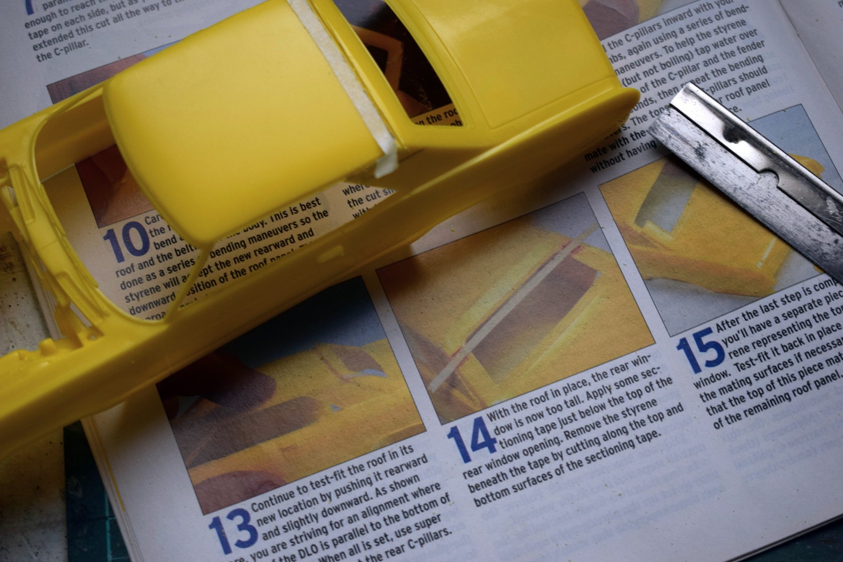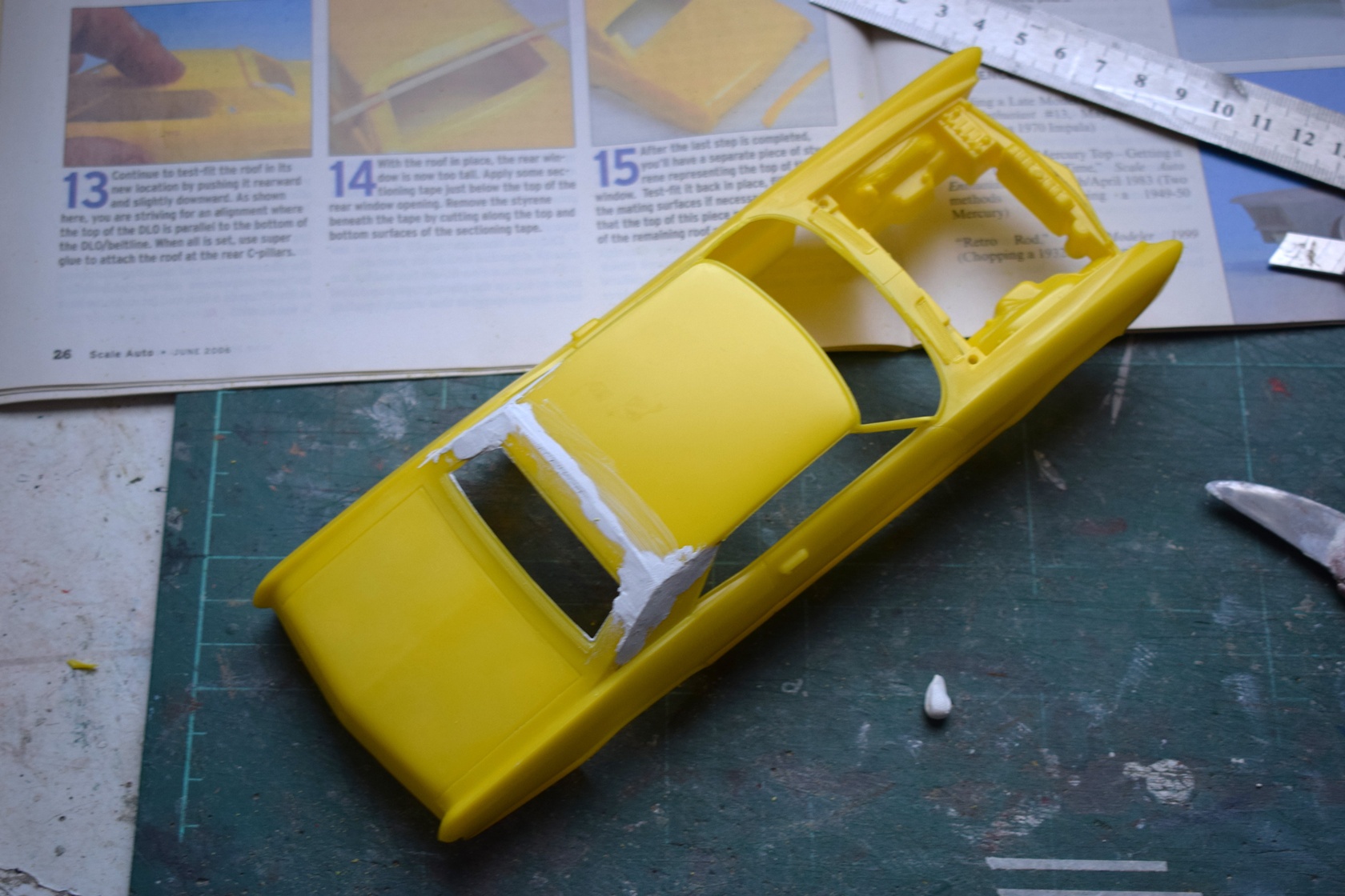 Io ho scelto di fare un mix tra classico e Custom (come nello stile di Koker) anche perché ho trovato un articolo su SCALE AUTO MAGAZINE (pubblicazione che ha chiuso nel 2020) che spiegava come abbassare il tettuccio in scratch e rendere la linea dell'auto più filante.