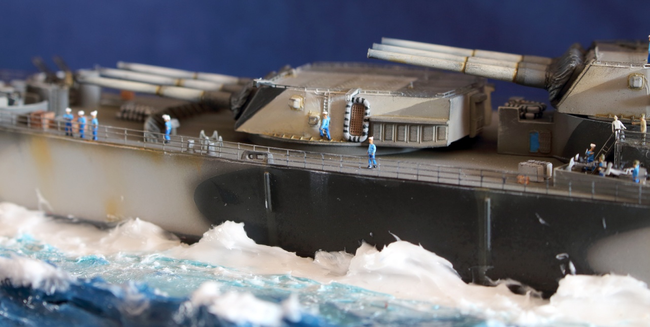 Quando ho pensato di realizzare la corazzata, non mi andava l idea di metterla su di un piedistallo ma la volevo vedere nel mare come è giusto che fosse... però allo stesso tempo volevo che si vedesse anche la sua parte immersa.